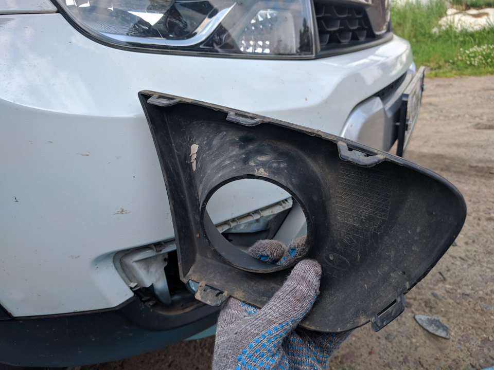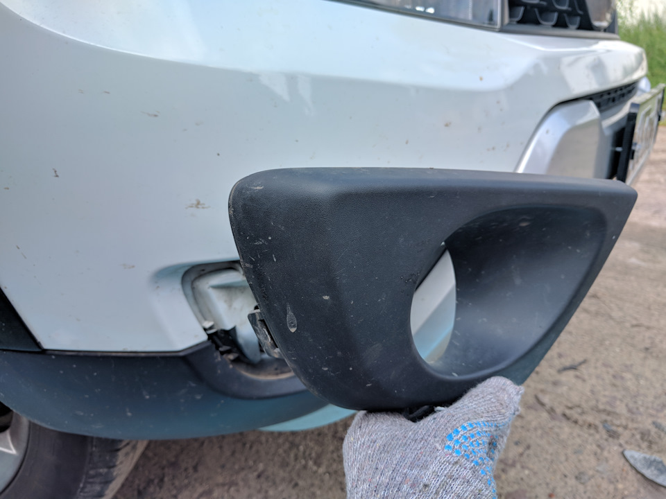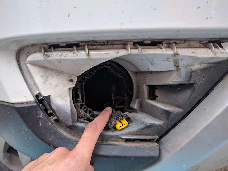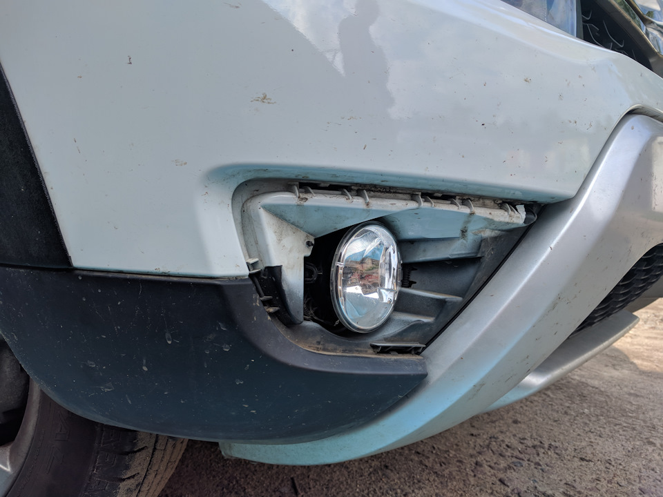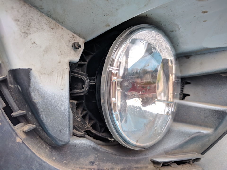 Перегорела лампочка. Стал думать как заменить. Официальный дилер выставил цену порядка 2 000 ₽ за всю услугу. В интернете удалось лишь найти, что замена лампочки противотуманной фары (ПТФ) это очень сложная процедура — в одном способе предлагалось поднимать машину на подъёмнике, снимать колесо, снимать подкрылок и менять лапочку; в другом способе предлагалось разбирать бампер.