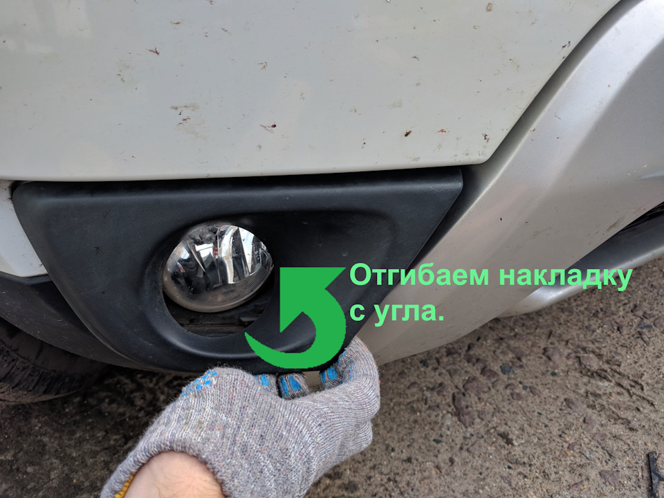 1. Впрямую руками снимаем декоративную накладку вокруг ПТФ.