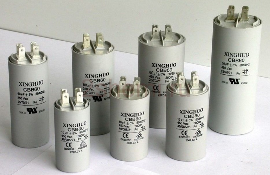 Рабочее напряжение этих конденсаторов должно быть в 1,5 раза выше, чем напряжение сети, то есть, для сети 220 вольт берем емкости с рабочим напряжением 330 В и выше. А чтобы пуск проходил проще, для пусковой цепи ищите специальный конденсатор. У них в маркировке присутствует слова Start или Starting, но можно взять и обычные.