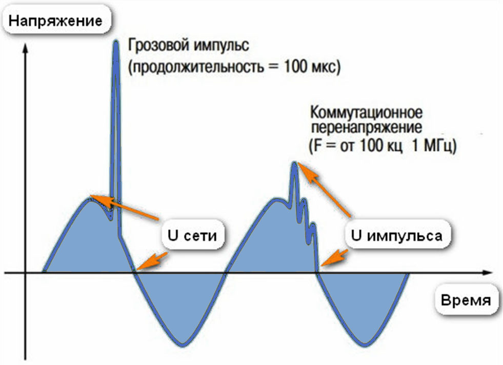 Такое явление может произойти при включении в линию или выключении приборов, дающих высокую индуктивную нагрузку. К ним относятся блоки питания, электромоторы, а также мощные инструменты, запитывающиеся от сети.