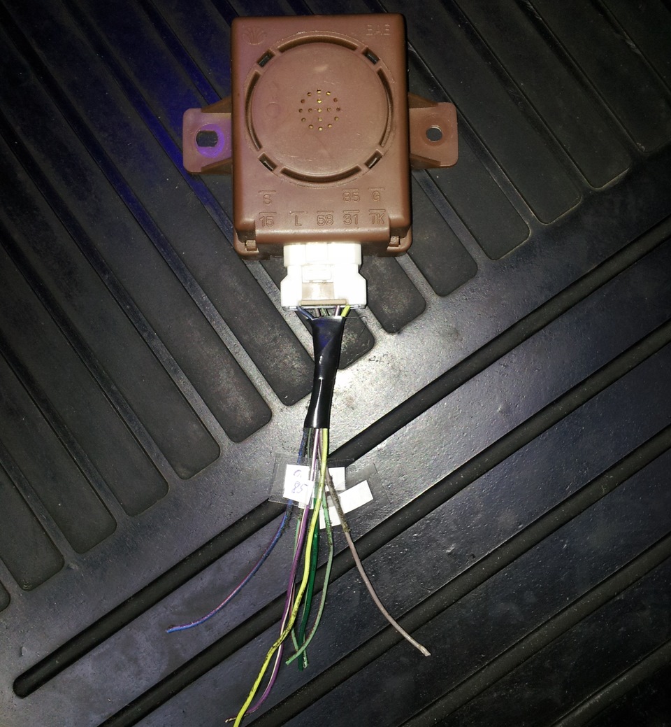 На него идет два провода, в один из них, я врезал провод канала 15 с зуммера, тут появляется +12 при провороте ключа зажигания в режим старт.